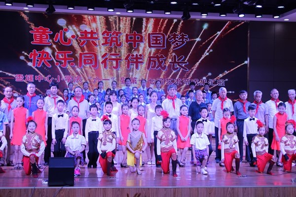文艺演出在舞蹈《小马奔腾》的欢快舞步中拉开帷幕。表演唱《给书包减肥》、情景剧《红领巾的约定》以新颖的表现形式、丰富的思想内涵,潜移默化地用社会主义核心价值观为孩子们提供思想浸润和心灵滋养。古筝表演《水云禅月》、民乐合奏《茉莉花》、展现了孩子们自信阳光、健康向上的良好精神风貌,表现了孩子们对中华传统美德的传承。跆拳道表演《bangbangbang》、拉丁舞表演《舞动精灵》《舞动拉丁》尤克里里表演唱《蓝莲花》展现了学校素质教育的优秀成果。当雪小合唱团唱响《国家》的激昂旋律时,场上场下齐声歌唱,将整场演出推向高潮。