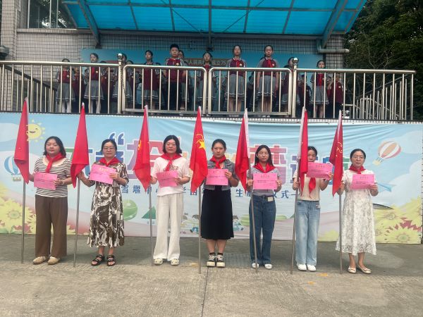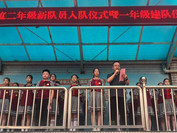 在这一喜庆的日子里,我校又将成立一批新的中队,为红领巾增添新的血液。秦校长宣读一年级建队决定,并为新中队授旗,为新辅导员颁发聘书。