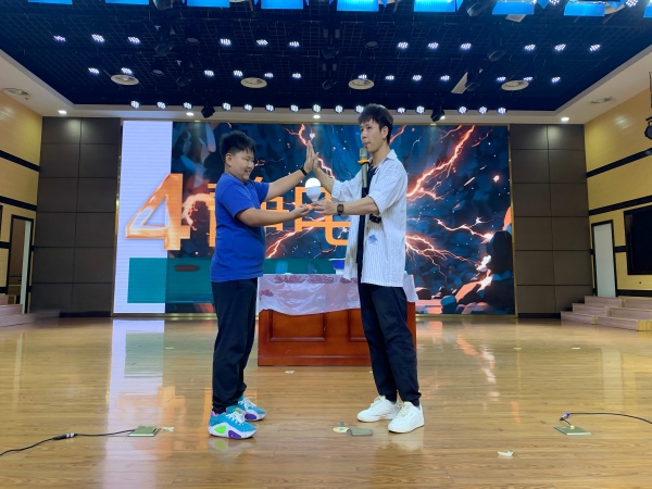 随后,“酷酷科学秀”的魔法师将魔法轮番上阵,引爆全场高潮。火云掌的烈焰在老师和学生掌心升腾,引得台下惊呼四起;甜蜜的陷阱中,谁也没有想到看似平常的碳酸饮料含糖极高;静电环节让同学的秀发“怒发冲冠”,欢声笑语中大家理解了电荷的奥秘;寻找大力士实验中,十一位同学奋力拉扯也无法分开的马德堡半球,让无形的大气压成为了当之无愧的“力气王”。