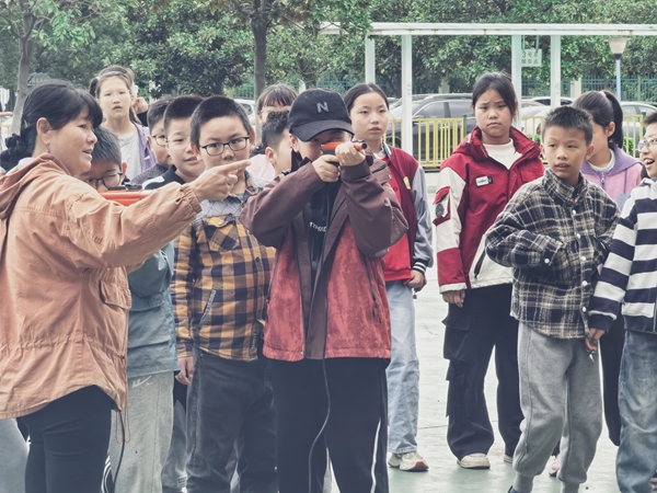 活动的最后环节是备受期待的“模拟射击比赛”。以年级为单位,班与班之间展开了激烈友好的角逐。赛场上,同学们神情专注,力求精准。清脆的“射击”声和此起彼伏的加油声,将活动推向了高潮。