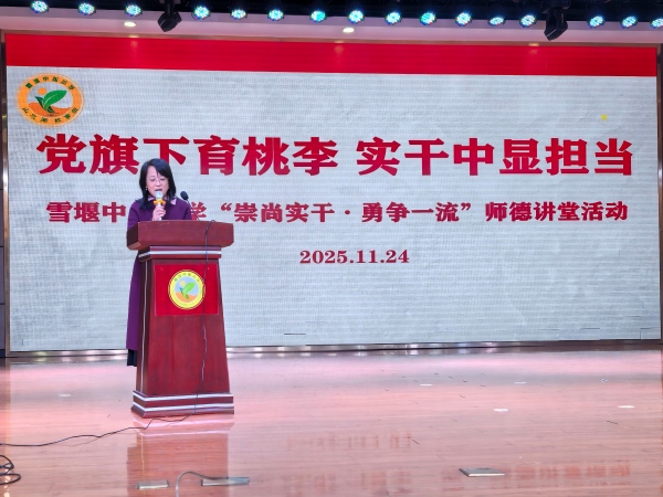 为弘扬高尚师德,彰显育人担当,11月24日,雪堰中心小学开展“崇尚实干,勇争一流”师德讲堂活动,三位教师分享育人故事,以实践案例诠释教育初心,传递实干力量。