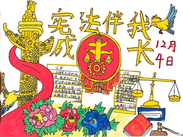 在深入推进宪法学习宣传的基础上,我校学生精心编排,绘制了一份份设计新颖、内容丰富、字迹工整的法治宣传报,精美的作品表明了他们学习宪法、维护宪法、遵守宪法的决心。