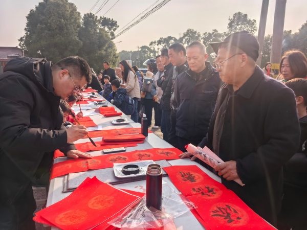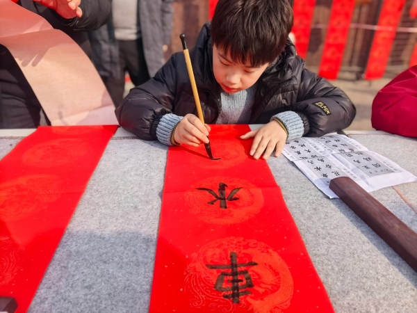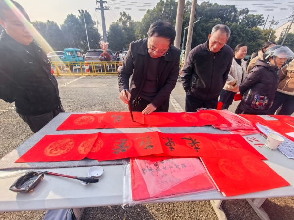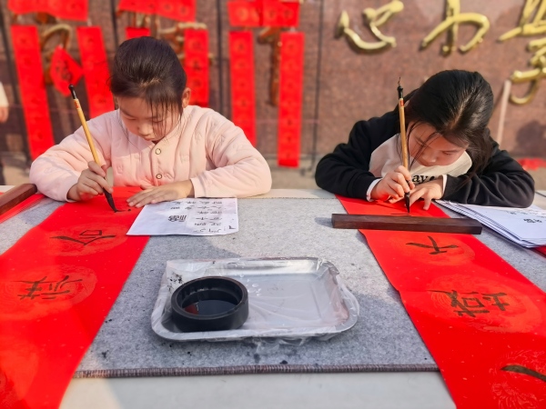 活动开始,学校书法社团的同学们在杨晓军、刘泉清两位老师的带领下,早已铺好红纸,研好浓墨。他们凝神静气,挥毫泼墨,一笔一划间尽显扎实功底。“车水马龙农家乐,花香鸟语大地春”“春风得意马蹄疾,前程似锦气象新”……一幅幅饱含美好祝愿的春联在他们笔下诞生,或苍劲有力,或娟秀灵动,引得过往师生与家长纷纷驻足欣赏、赞叹不已。