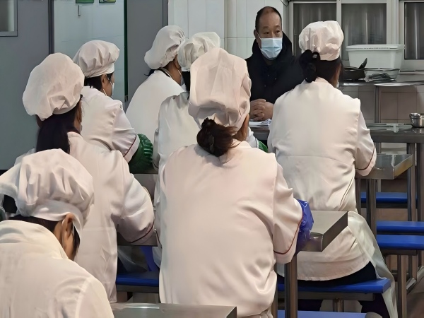 培训会上,学校后勤分管校长顾志成校长带领大家重温了《餐饮服务食品安全操作规范》,重点围绕原料采购索证索票、食品储存生熟分开、食品留样规范、个人卫生习惯以及突发事件的应急处置进行了详细讲解。同时,结合近期食品安全典型案例,进行了警示教育,要求每一位员工时刻绷紧“安全弦”,杜绝麻痹大意思想。