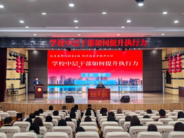 讲座开始,李岩老师结合教育管理工作实际,精准剖析学校中层干部的角色定位与核心职责。他指出,中层干部是学校发展的中坚力量,是连接学校决策与一线执行的关键纽带,其执行力强弱,直接关系到学校各项工作的落实成效与长远发展。针对当前学校管理中的痛点与难点,李岩老师用生动鲜活的案例、通俗易懂的语言,围绕执行力的核心内涵、高效执行的关键要素、执行过程中的沟通技巧、问题破解方法等内容展开深入剖析。