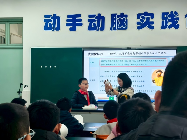 整节课中,张老师以学生为主体,采用讨论、实验、故事分享等多种教学形式,充分调动学生参与课堂的积极性。学生们踊跃发言、积极讨论,在自主探究与合作交流中,逐步厘清地球形状的科学结论,感受人类探索地球的漫长历程与科学精神。
